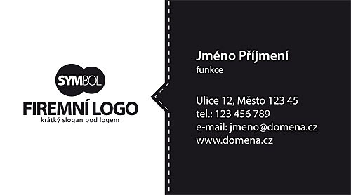 Dvoubarevné vizitky. Jednoduchá dvoubarevná vizitka rozdělená na levou bílou část s logem a pravou barevnou část s kontakty. Na výběr je několik základních barev, ale není problém barvu pruhu libovolně změnit nebo doladit třeba podle barvy loga.