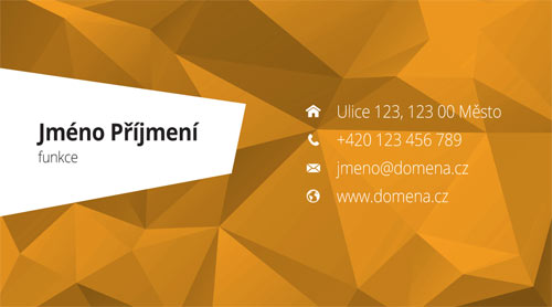 Návrh vizitky s barevným pozadím. Vizitky s barevným pozadím vytvořeným z trojúhelníků. Barvu pozadí i barvu pruhu pod jménem je možné libovolně změnit.