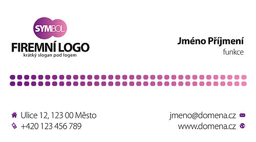 Firemní vizitky s tečkami. Jemná vizitka s bílým pozadím a pruhem z barevných teček. Barvu teček i barvu pozadí je možné změnit.