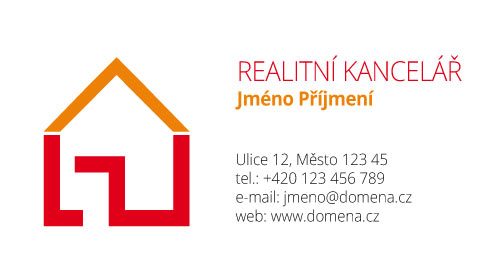 Vizitky s domečkem pro realitní kancelář. Návrh vizitky určený pro realitní kanceláře nebo realitní makléře. Vizitky s jednoduchým nákresem domu.
