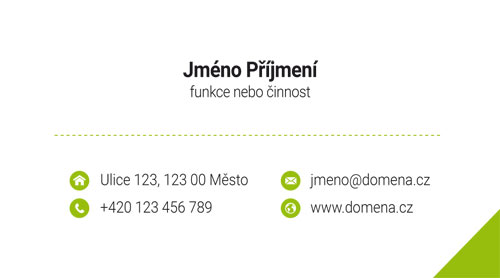 Jednoduché vizitky pro firmy. Jednoduchá vizitka s bílým pozadím a barevným rohem. Návrh vizitky je k dispozici v několika různých barvách. Barva rohu je vždy sladěna s barvou ikon.