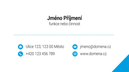 Jednoduché vizitky pro firmy. Jednoduchá vizitka s bílým pozadím a barevným rohem. Návrh vizitky je k dispozici v několika různých barvách. Barva rohu je vždy sladěna s barvou ikon.