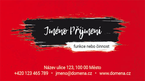 Moderní vizitky s pruhem. Jemné vizitky se strakatým barevným pozadím, přes které je jméno ve výrazném barevném pruhu. Ostatní údaje jsou ve spodní části vizitky. Barvy je možné jakkoliv upravit.