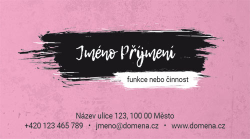 Moderní vizitky s pruhem. Jemné vizitky se strakatým barevným pozadím, přes které je jméno ve výrazném barevném pruhu. Ostatní údaje jsou ve spodní části vizitky. Barvy je možné jakkoliv upravit.