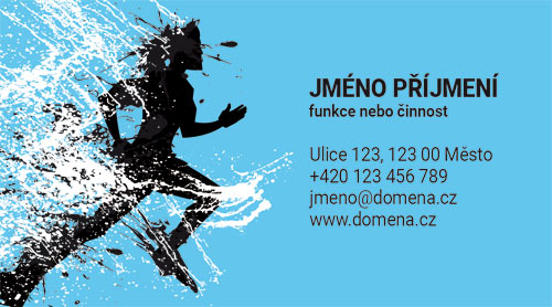 Vizitky s běžcem. Návrhy vizitky pro sportovce nebo trenéry se siluetou běžící postavy. Pozadí vizitky je možné jakkoliv změnit.