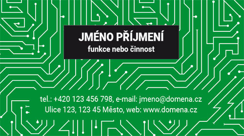Vizitky pro elektrikáře a elektroniky. Vizitky pro elektrikáře a elektroniky. Návrh vizitek má na pozadí vzor plošného spoje. Barvu pozadí, rámečků pod texty i barvu plošného spoje je možné jakkoliv upravit.