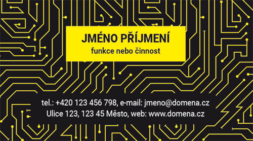 Vizitky pro elektrikáře a elektroniky. Vizitky pro elektrikáře a elektroniky. Návrh vizitek má na pozadí vzor plošného spoje. Barvu pozadí, rámečků pod texty i barvu plošného spoje je možné jakkoliv upravit.