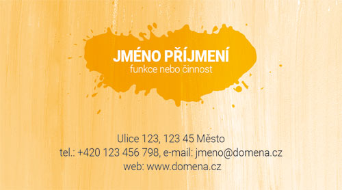 Barevná vizitka s cákancem. Vizitka s barevným pozadím a barevným cákancem
