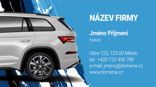 Vizitky pro autoservis s fotkou auta. Návrh vizitky pro autoservis, taxi službu, řidiče nebo autodopravu s barevným pozadím a fotkou auta.