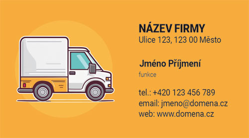 Vizitky pro autodopravu. Vizitky pro autodopravce s barevným pozadím a obrázkem auta. V nabídce máme obrázek malé dodávky, větší dodávky, menšího nákladního auta a velkého nákladního auta.